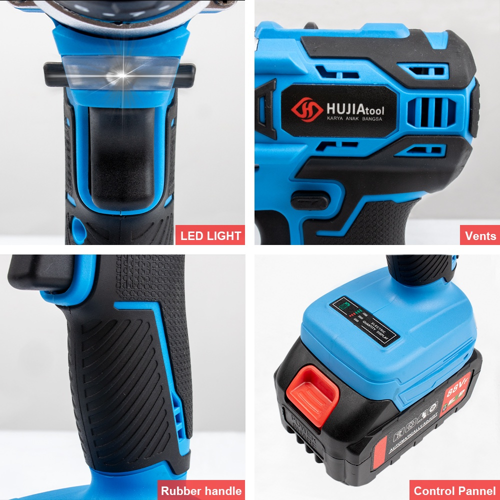 HUJIA 88Vf Bor Dan Impact Wrench Paket Lengkap Brushless 350N.m Impact Baterai Impact Cordless Impact Hujia Mesin Bor Ba