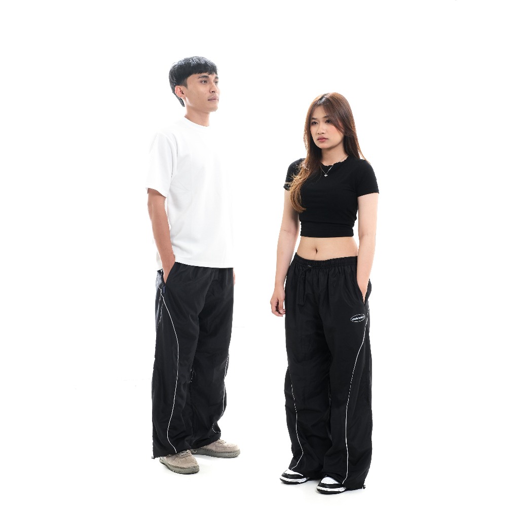 Unbroken Official Baggy Pants | One Line White in Black Loose Casual