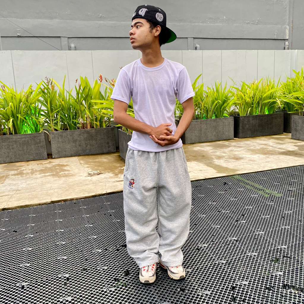 Celana Panjang Baggy Sweetpants Fleece Tebal – Warna Abu Misty Bordir Betty Unisex