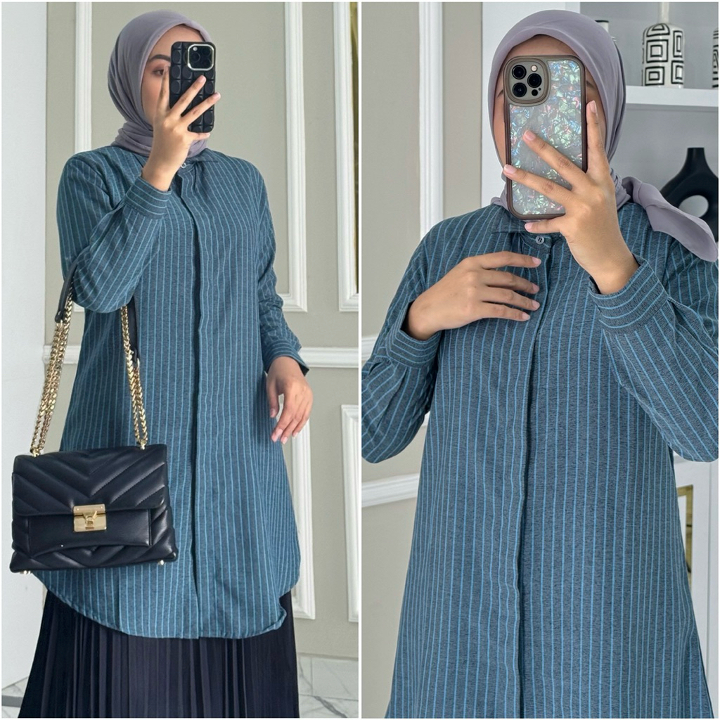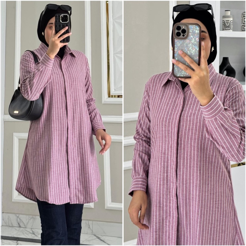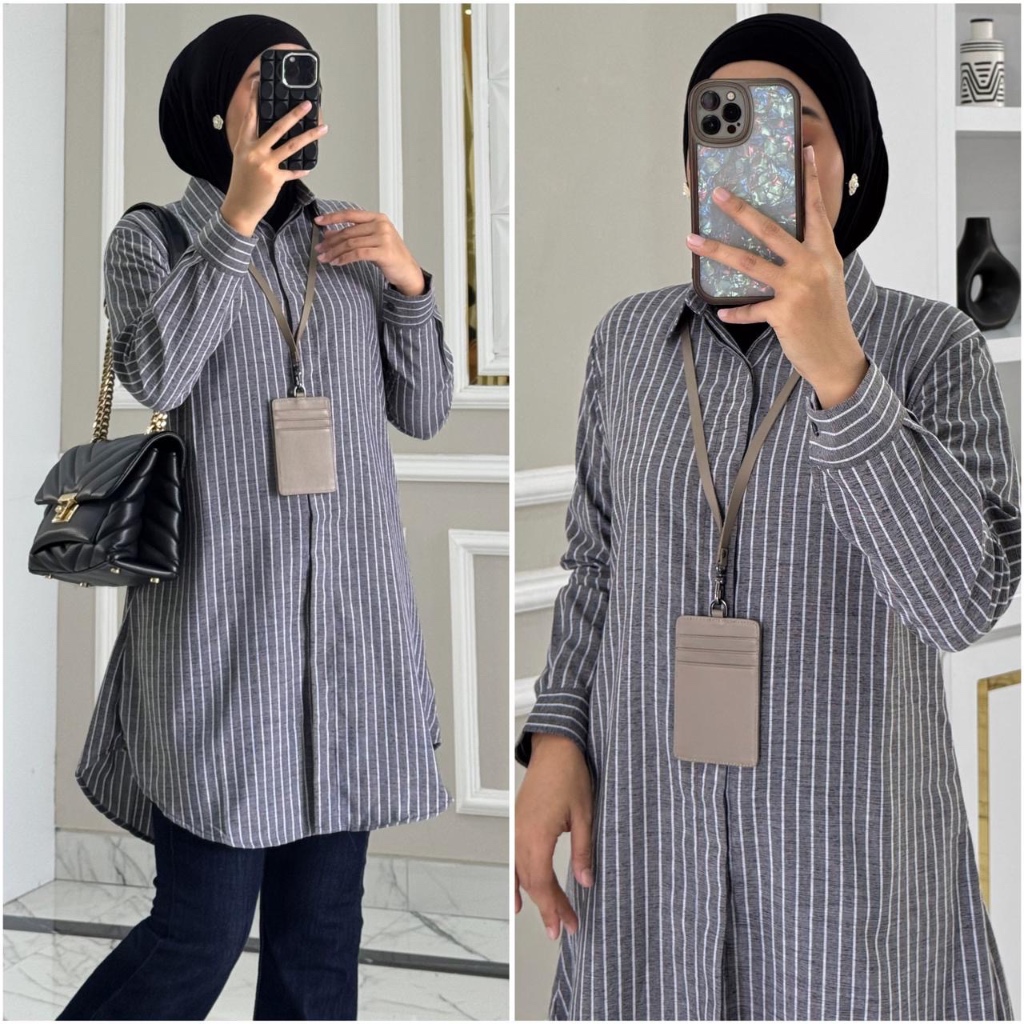 PAULINA tunik by ZALFA OUTFIT / kemeja panjang / tunik Salur Poplin / tunik katun poplin premium Murah Gratis Ongkir