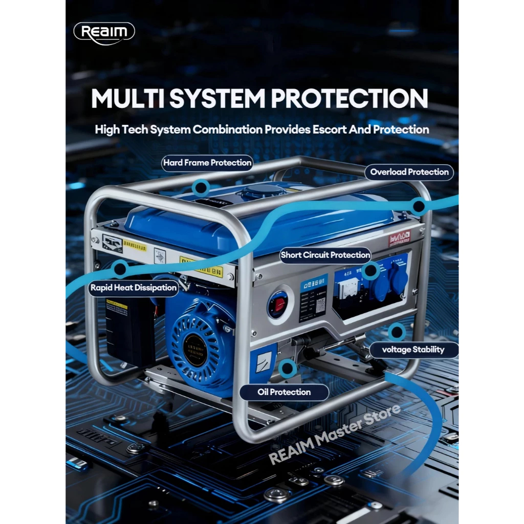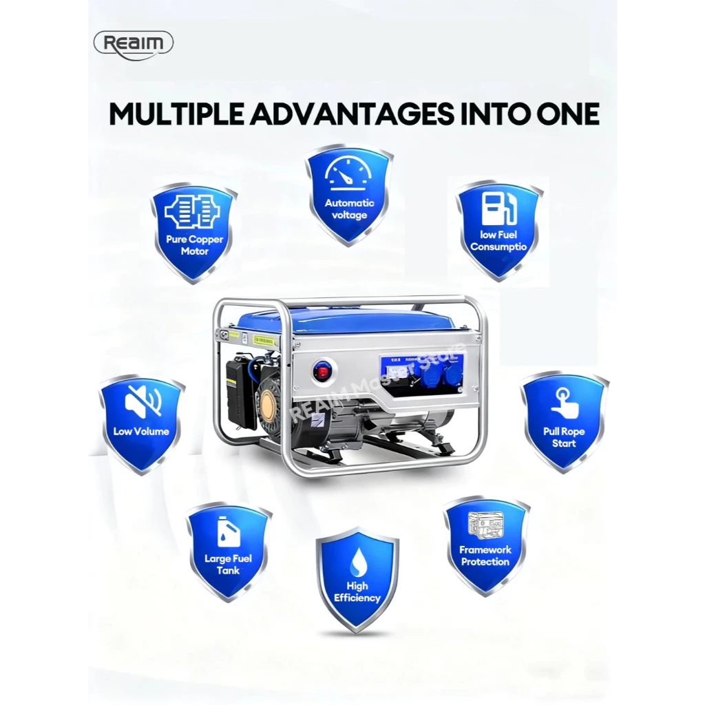 REAIM Mesin Genset 4000W Genset Portable Pembangkit Listrik 210CC Mini untuk Rumah Tangga Outdoor