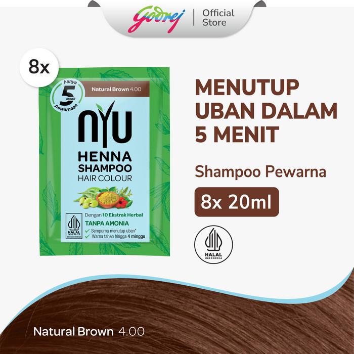 NYU HENNA SHAMPOO PEWARNA RAMBUT - NATURAL BROWN - ISI 8 PCS