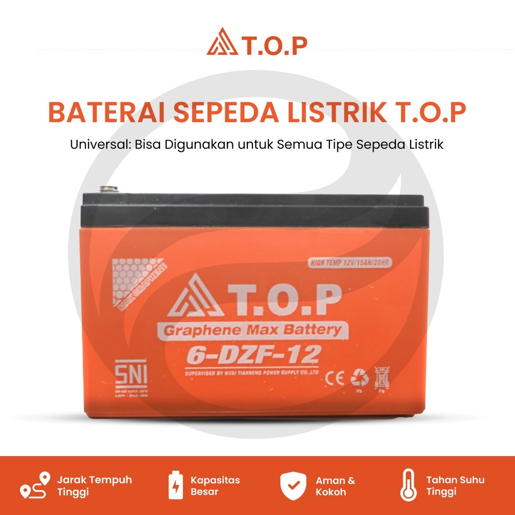 [Mall]【TANPA DP】BATERAI / AKI T.O.P SEPEDA LISTRIK 12V 15AH ORIGINAL BERKUALITAS