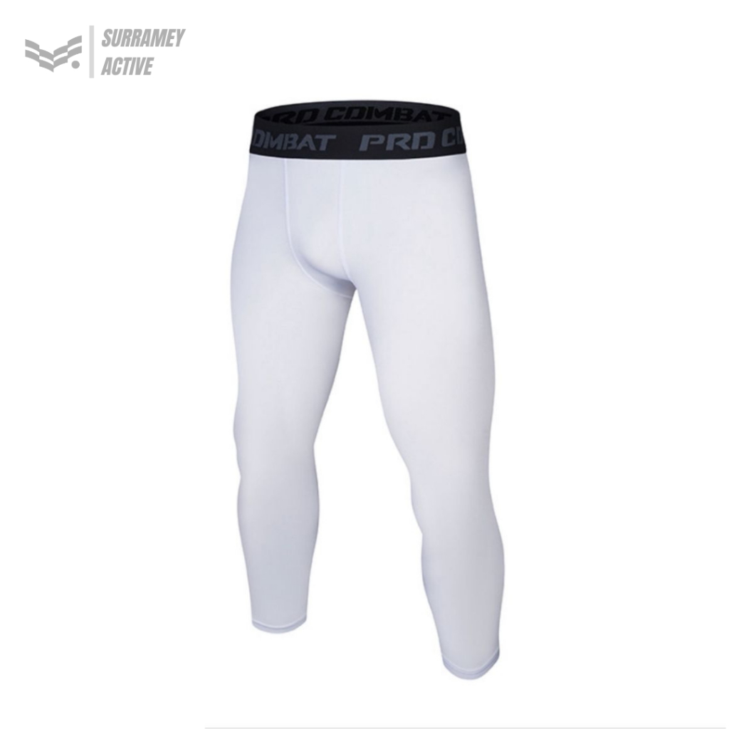 Surramey Active Celana Manset Legging 34 Baselayer Pro Combat Olahraga Running Pria Black Hitam White Putih