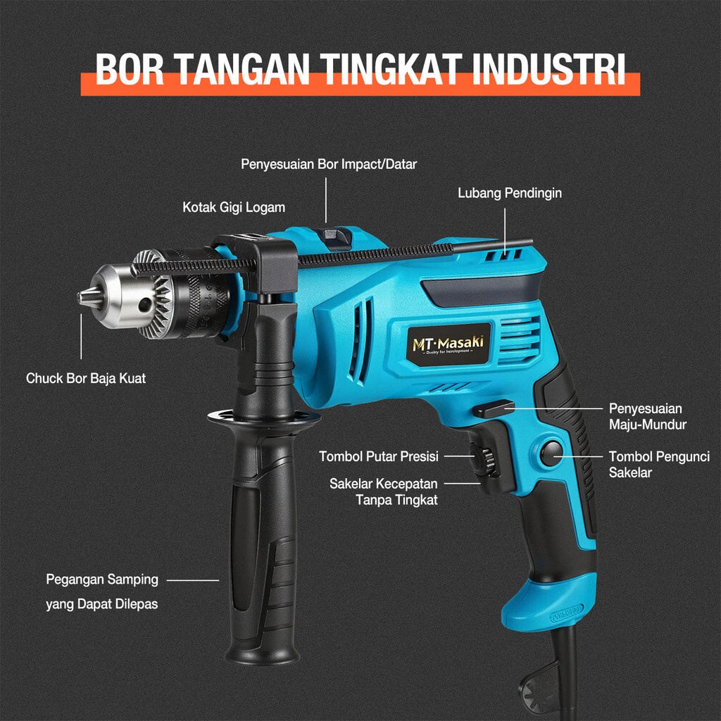MTMASAKI Mesin Bor Listrik Impact Drill Listrik Pro 13mm MT-13B