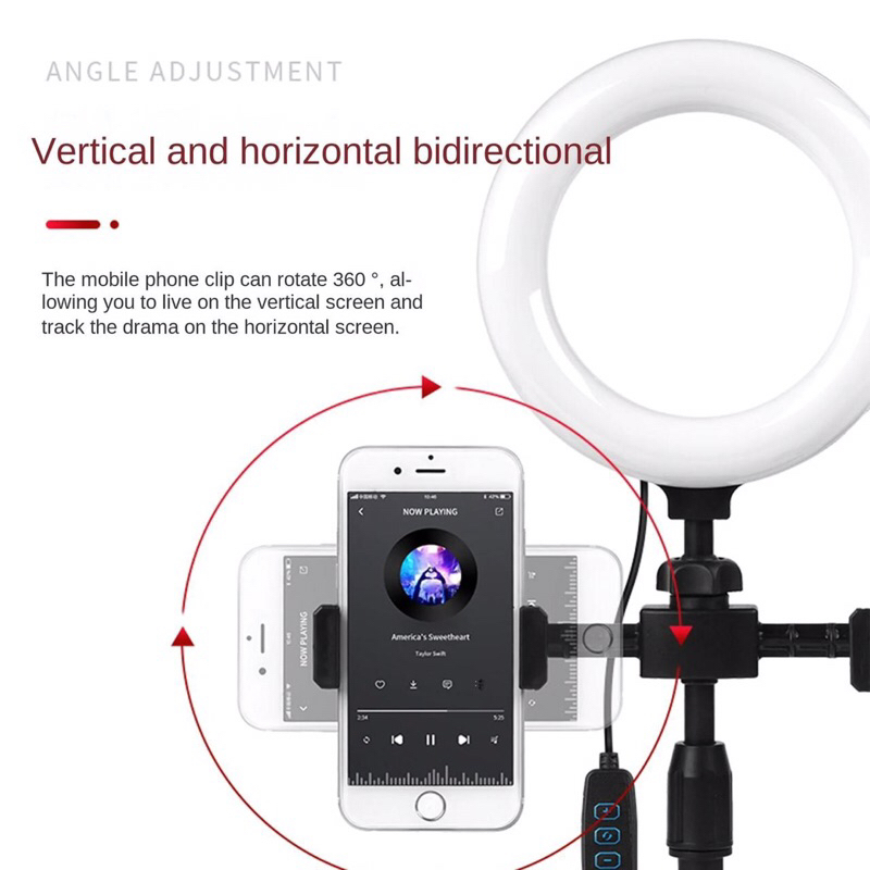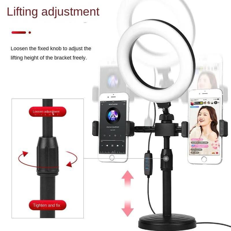 Tripod 28CM + 2 Holder HP + Lampu Ringligth 16CM Stand HP Selfie Vlogging Podcast Review Live Nonton