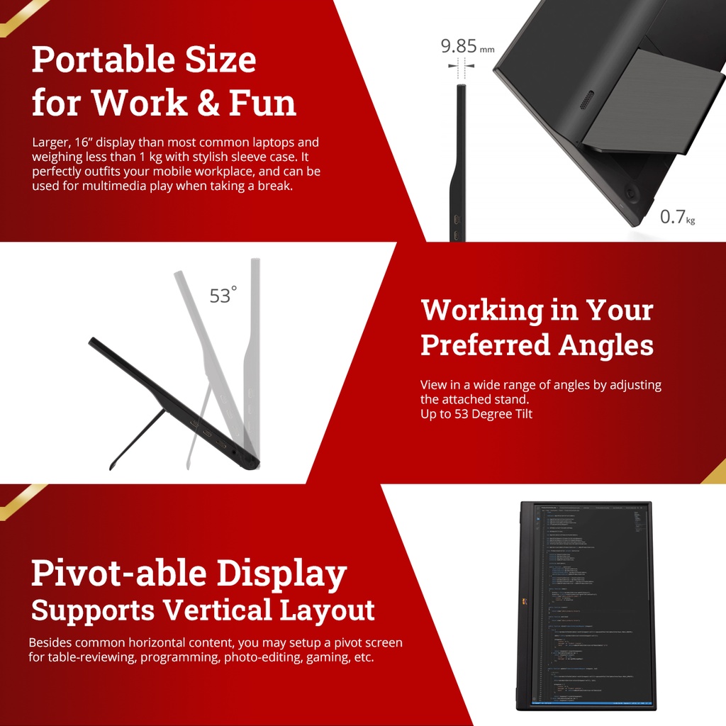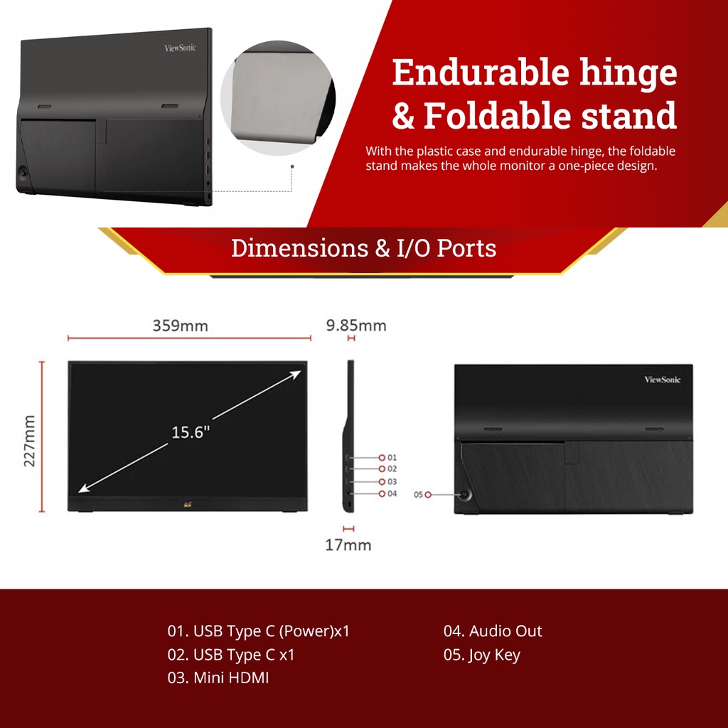 ViewSonic VA1655 - 15.6" Portable Monitor | 1080p | USB-C | Mini HDMI