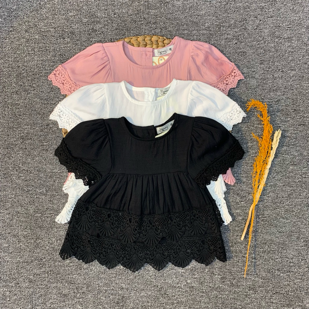 Atasan Blouse Anak Perempuan Memory Life Warna Navy , Hitam, Peach , Putih Bersih & Merah Umur 6 Bulan - 8 Tahun.