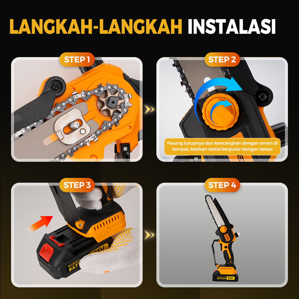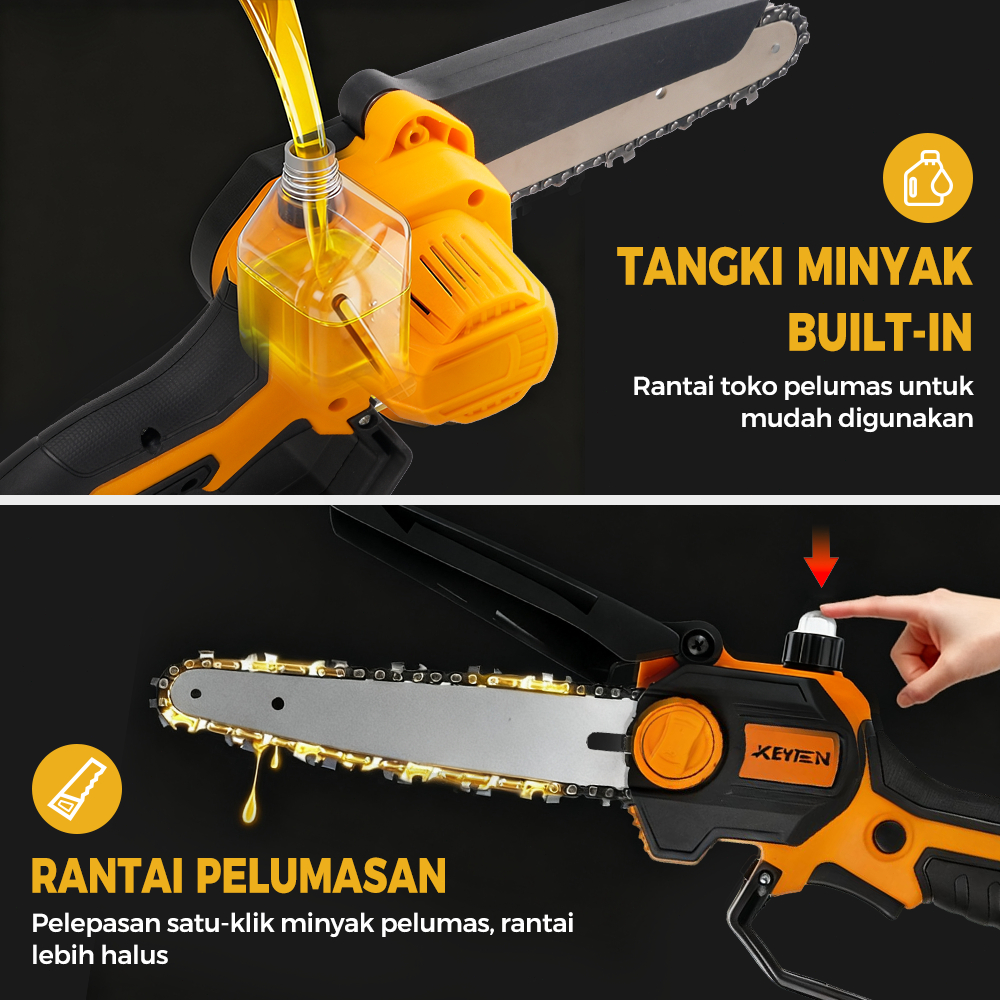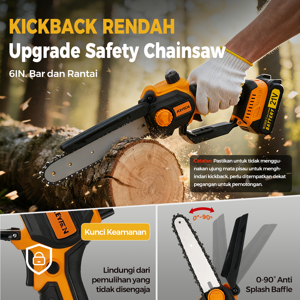 KEYTEN 6 Inch Gergaji Mesin Mini Pemotong Kayu Cordless Chainsaw Mini Listrik Portable Lithium