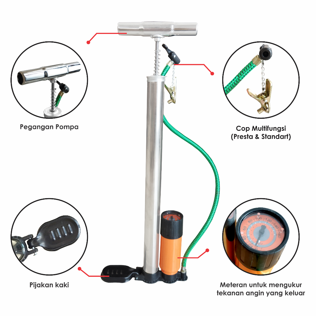 Pompa Angin Ban Sepeda Motor Mobil Bola Balon / Pompa Multifungsi CAB 60 CM