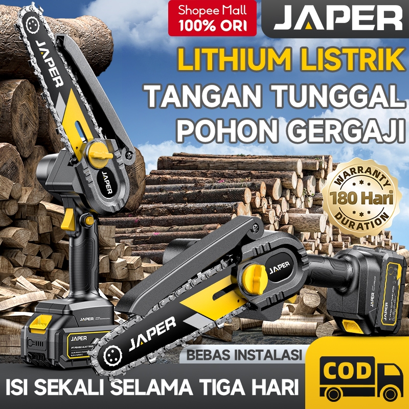 JAPER Gergaji Listrik 6 Inci Mini Portabel Tanpa Kabel Penebangan Kayu Luar Ruangan Lithium Tangan Tunggal Bebas Instala