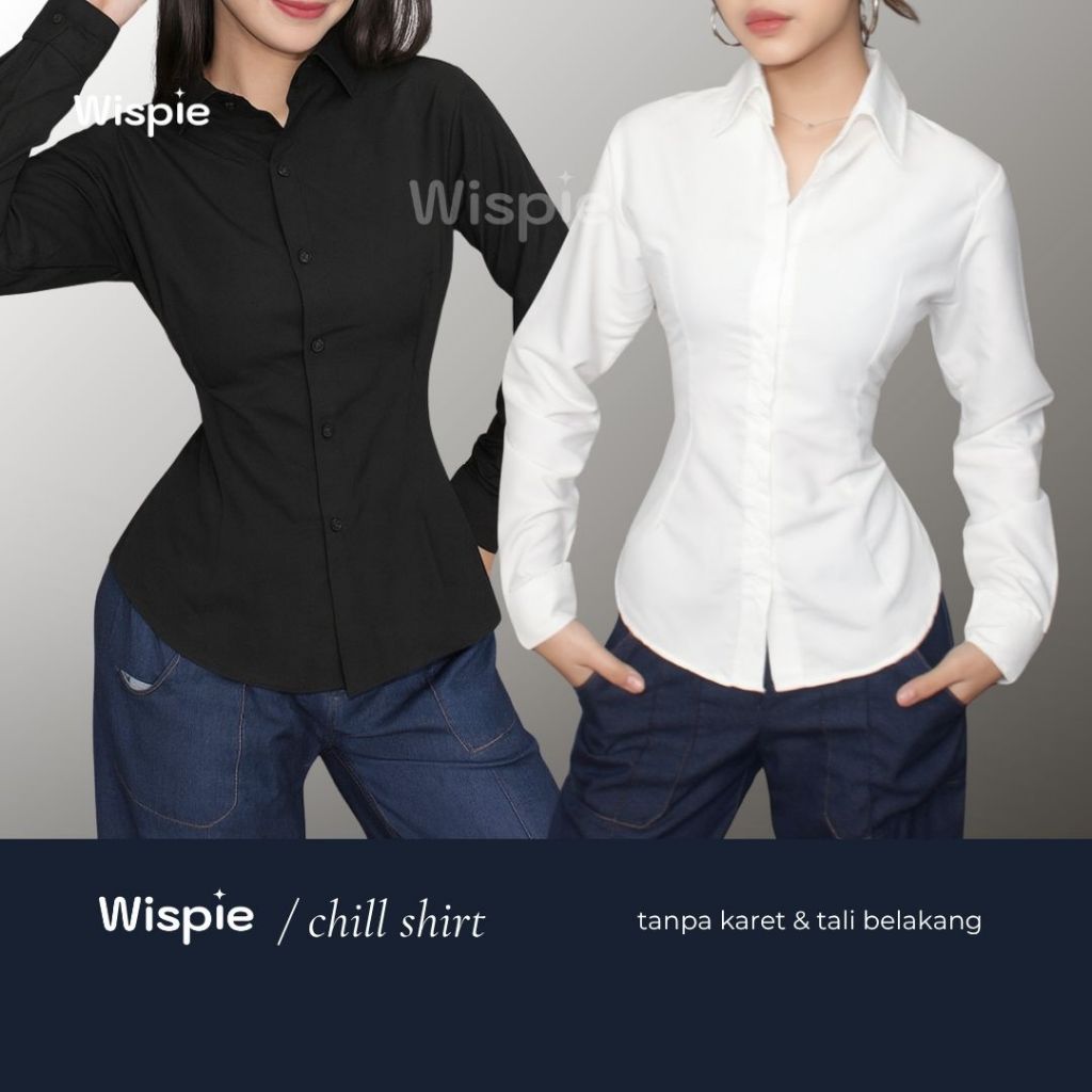 Wispie Chill Shirt Kemeja Kerja Putih Polos Interview Wawancara Ospek Wanita Lengan Panjang Fitted Shirt Kotak Murah Gra