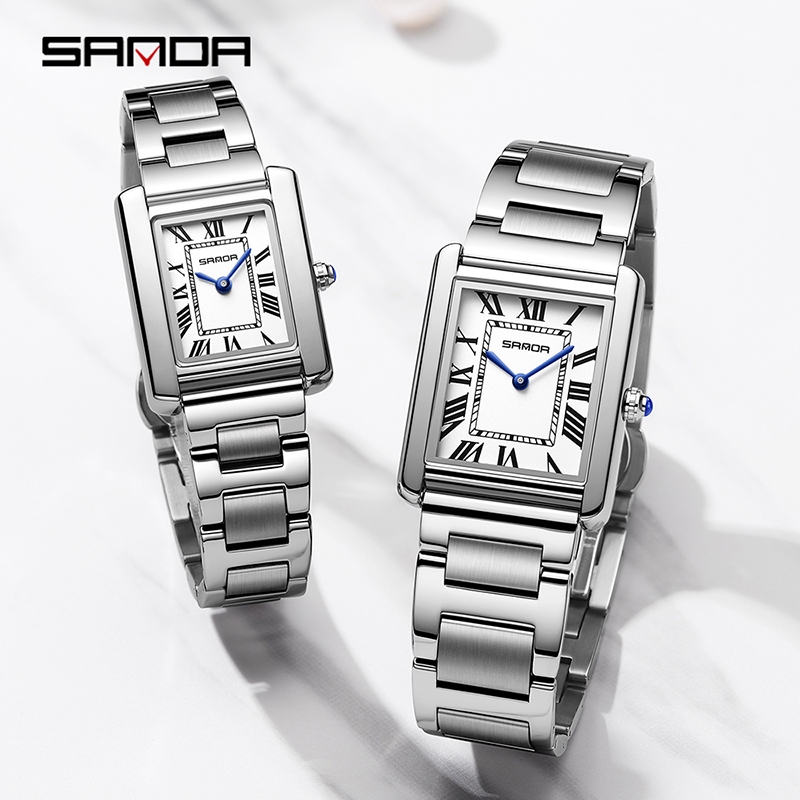 Sanda 1108 Jam Tangan Pria Analog Retro Style Tali Stainless Rantai Quartz