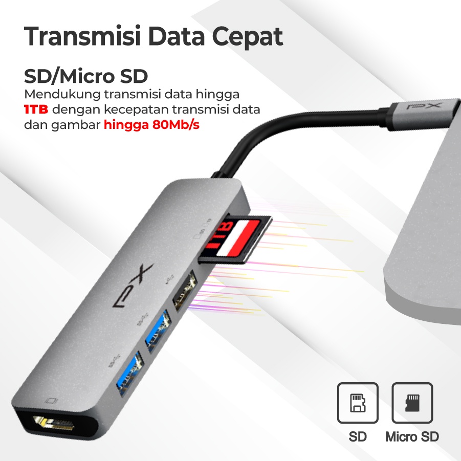 Type C 3.1 to HDMI Hub Converter USB Micro SD Card 6 in 1 PX UCH160