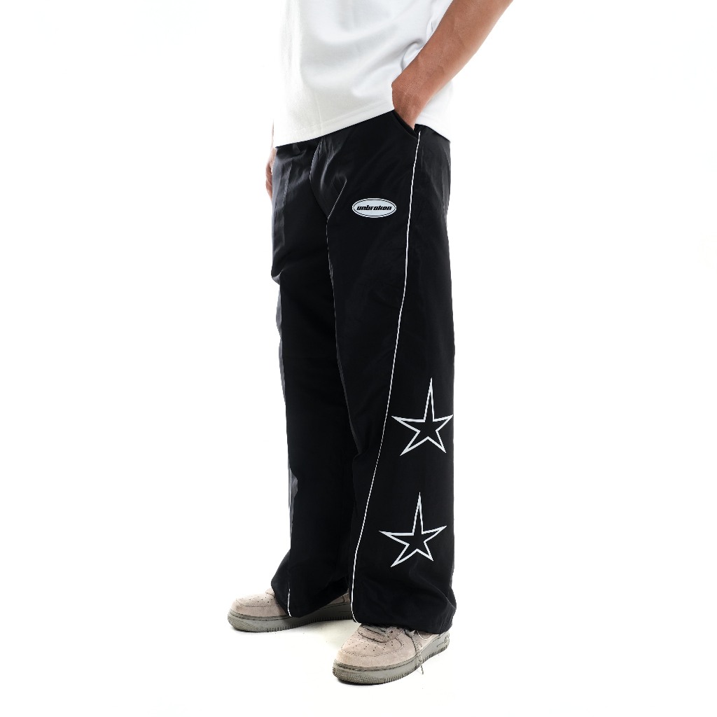 Unbroken Official Celana Parachute Star Panjang Loose Pants Hitam Basic Casual