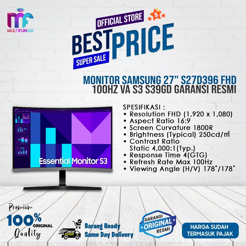 Monitor Samsung 27" S27D396 FHD 100Hz VA Curved (Pengganti C27R500) Garansi Resmi