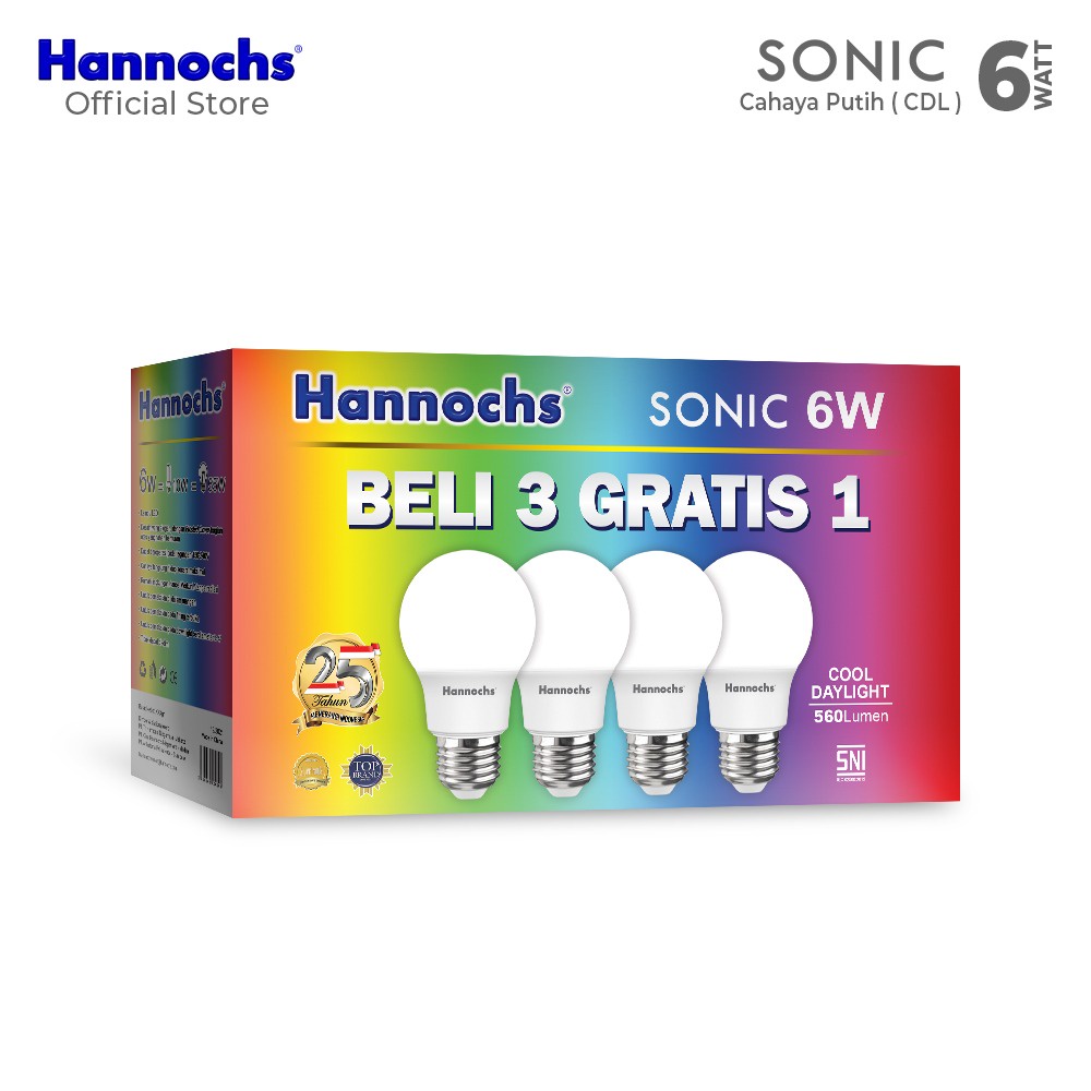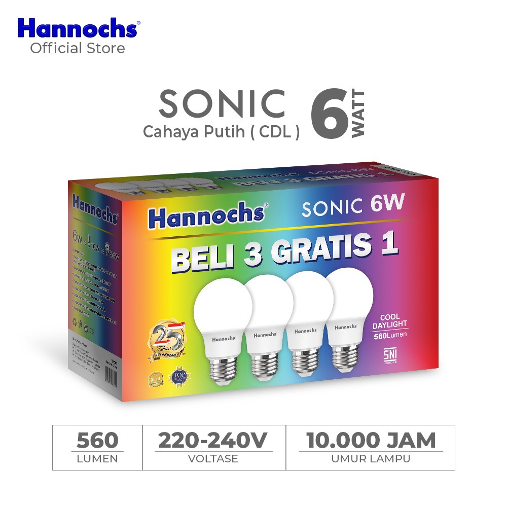 [GARANSI 1THN] Hannochs Lampu LED Paket 3+1 Sonic 6W/10W/13W (Isi 4pcs) | Cahaya Putih/ Kuning