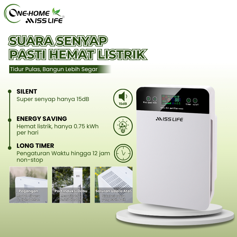 Miss Life Air Purifier Pembersih Udara With Hepa Filter Saring Partikel Pm2.5 Ion Negatif Filter One Home Karbon Anti Ka