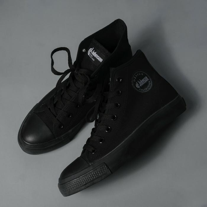 Sepatu Johnson - Basic HC Black Mono Hitam Sneakers Canvas Casual Karet Shoes - Black Mono 35