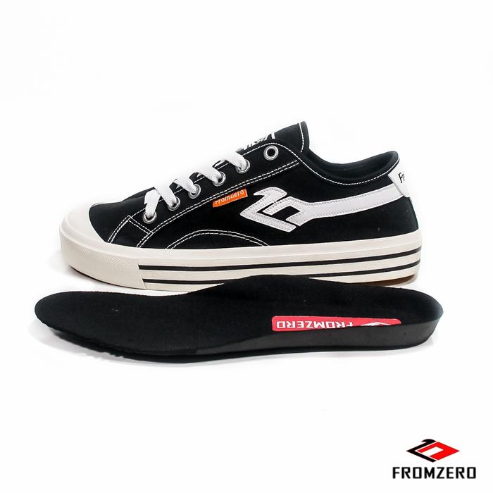 Fromzero - Sepatu Sneakers Cassual Sepatu Sekolah Low Black white free tas dan stiker - HITAM LIST PUTIH 36