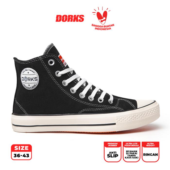 Sepatu Dorks - Back To School High Black Sepatu Snekers Casual Shoes Sepatu Sekolah Pria Wanita - 39