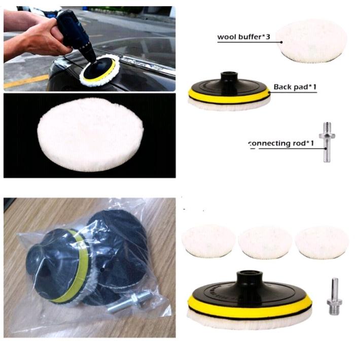 HARGA MIRING ! WOLL PAD POLES MOBIL MOTOR 3" 5PC PAD WOOL POLISHING SET BUFFING CAR - 5 INCI MURAH