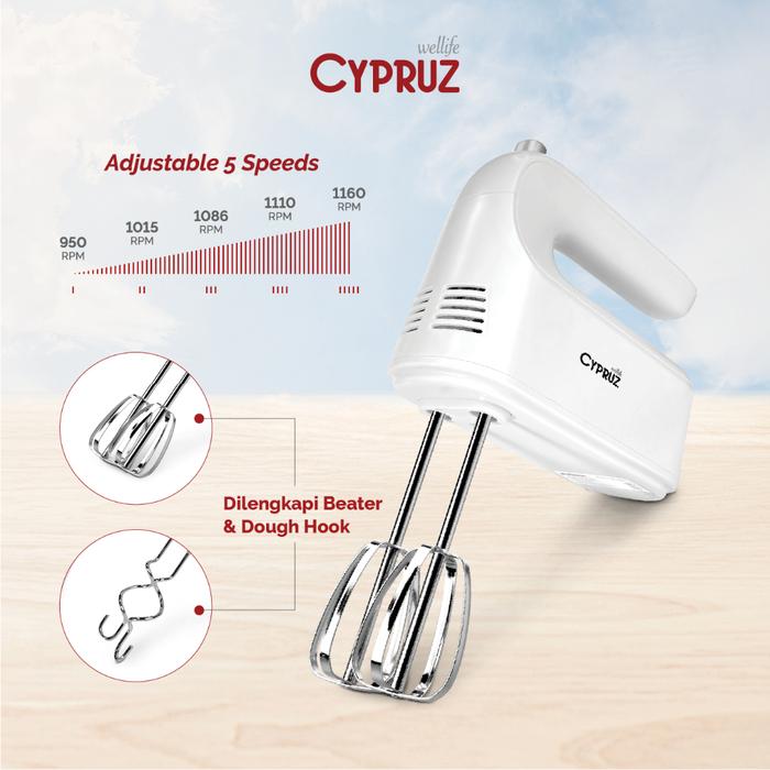 Cypruz Turbo Hand Mixer Pengaduk Adonan 5 Speeds