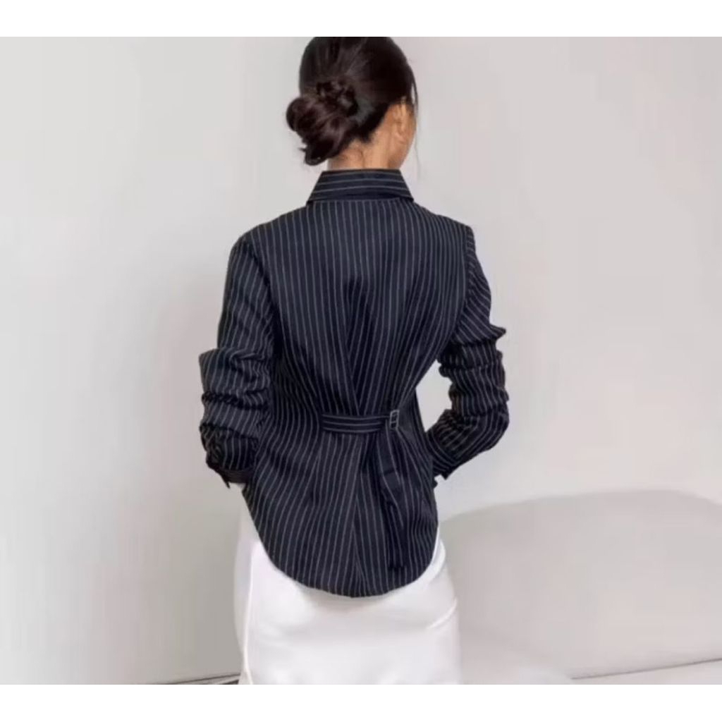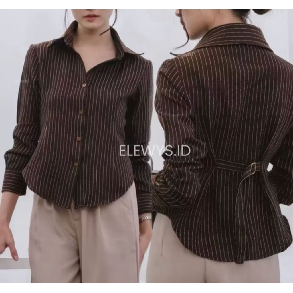 ATASAN WANITA LUNA STRIPE KEMEJA FITTED// BAJU ATASAN WANITA KEKINIAN // BAJU KEMEJA WANITA ELEGANT Murah Gratis Ongkir