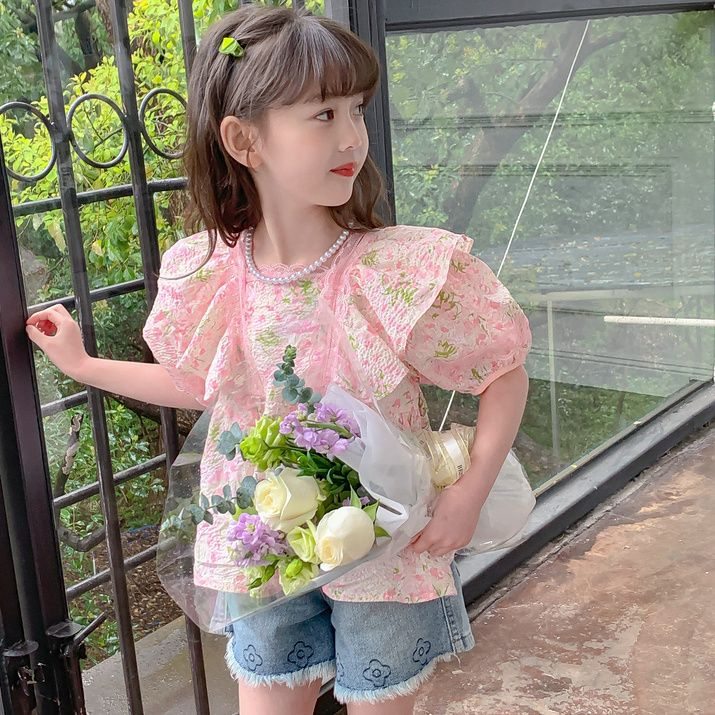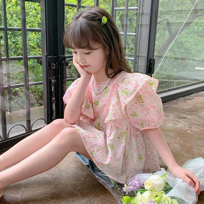 1-9 Tahun Baju Blouse Anak Perempuan Korea Lengan Pendek Bunga Santai Cute Nyaman