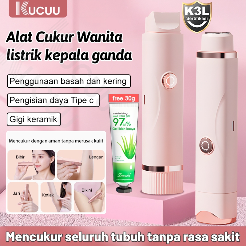 (Versi Premium)KUCUU Pencukur Bulu Miss V Alat Cukur Bulu Kemaluan Alat Cukur Wanita Desain Kepala ganda tahan air