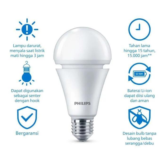 Lampu Cas Emergency Rechargeable BB philips 7w, 9w, 13w warna putih 6500K