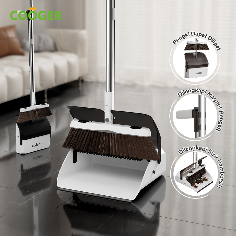 COOGER Sapu Pengki Set Bulu Halus Dan Sikat 3IN1 Dengan Wiper Dan Alat Pel Lantai Multifungsi