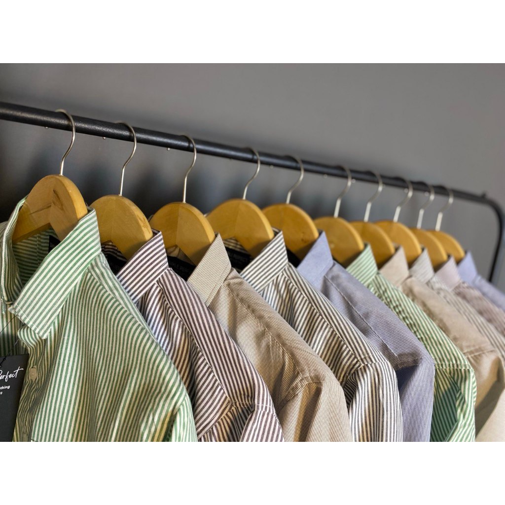 Kemeja Pria Stripe Garis Lengan Panjang Simple Perfect Bahan Katun Best Seller Premium Murah Gratis Ongkir