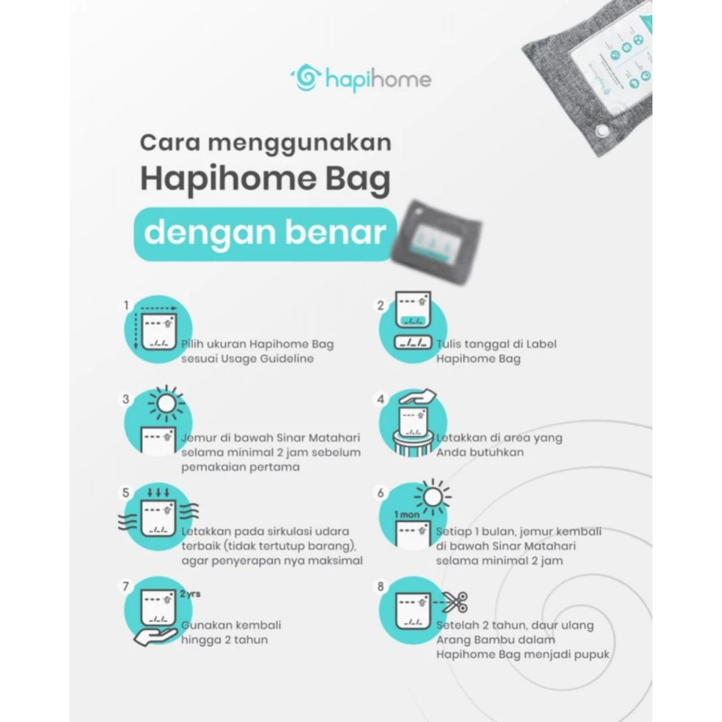 Hapihome 200Gr Natural Air Purifier Dehumidifier Bag Pembersih Udara Alami, Penyerap Lembap Dan Bau Bamboo Charcoal Aran