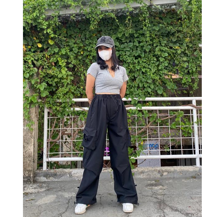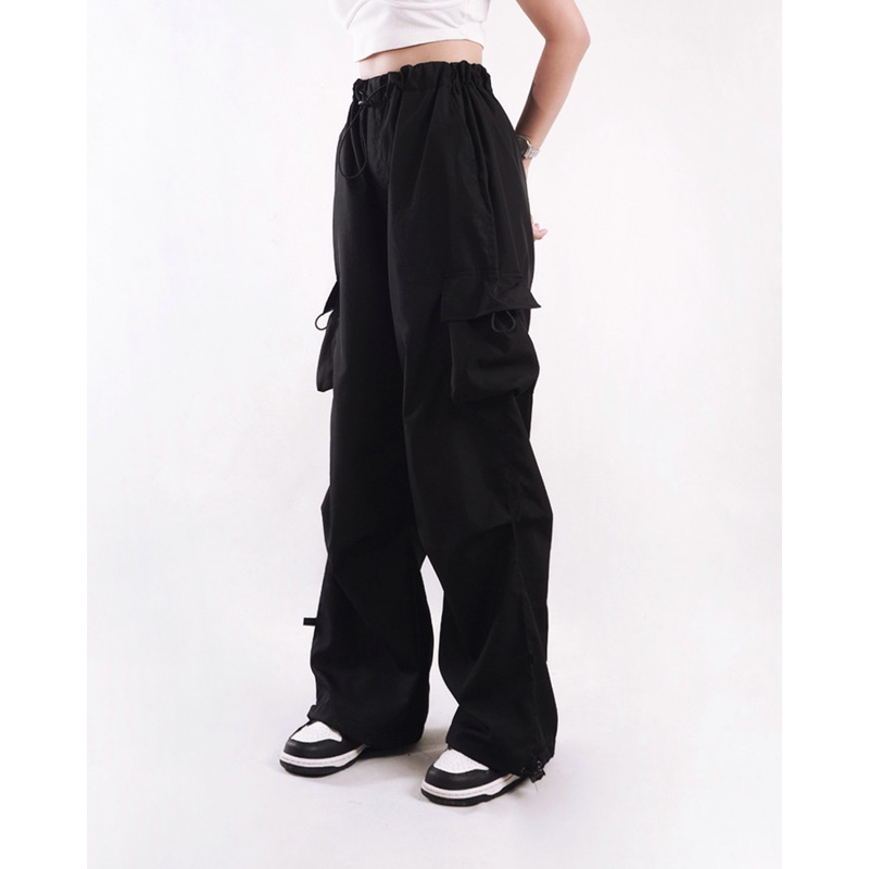 AIGO zeil cargo pants - celana cargo parasut panjang hitam streetwear unisex