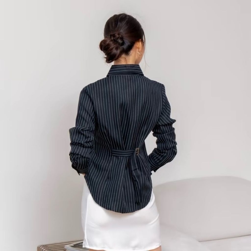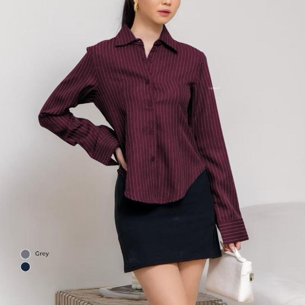 Luna Stripe Kemeja Fitted - Kemeja Wanita Fitted Stripe Salur Basic Casual Murah Gratis Ongkir