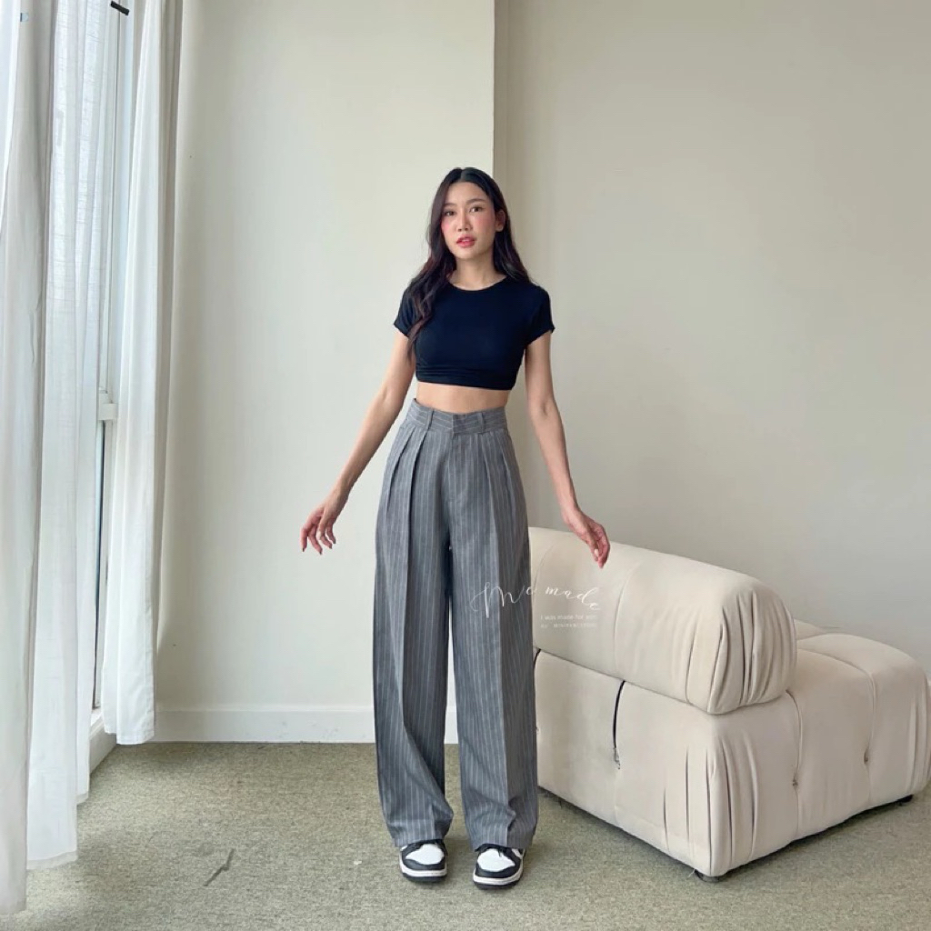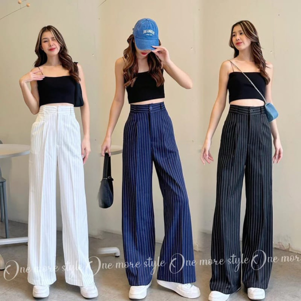 Stripe Pants - Loose Pants Stripe Trousers Wanita - Celana Kulot Wanita Highwaist -Celana Panjang Garis Striped Formal /
