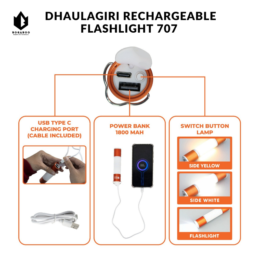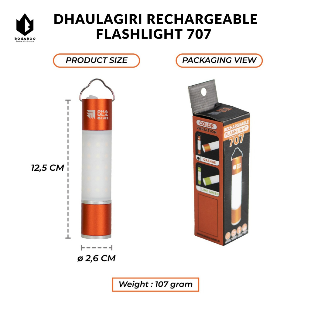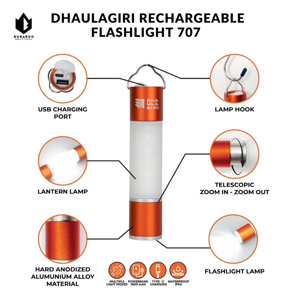 Dhaulagiri Rechargeable Flashlight 707 Waterproof - Lampu Lentera Gantung Anti Air - Lampu Tenda Camping Outdoor - Lampu