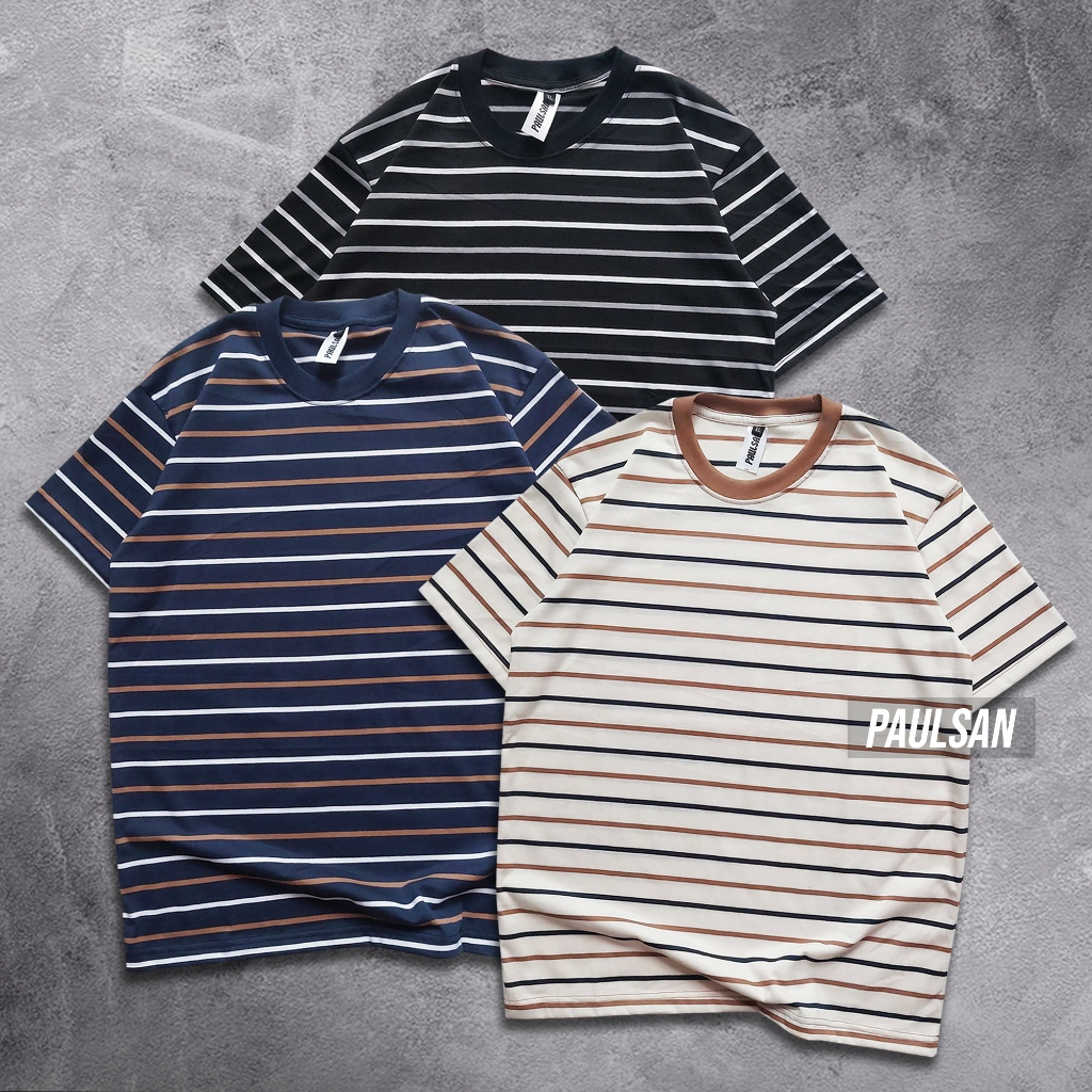 Kaos stripe medium kombinasi salur pria wanita Murah Gratis Ongkir