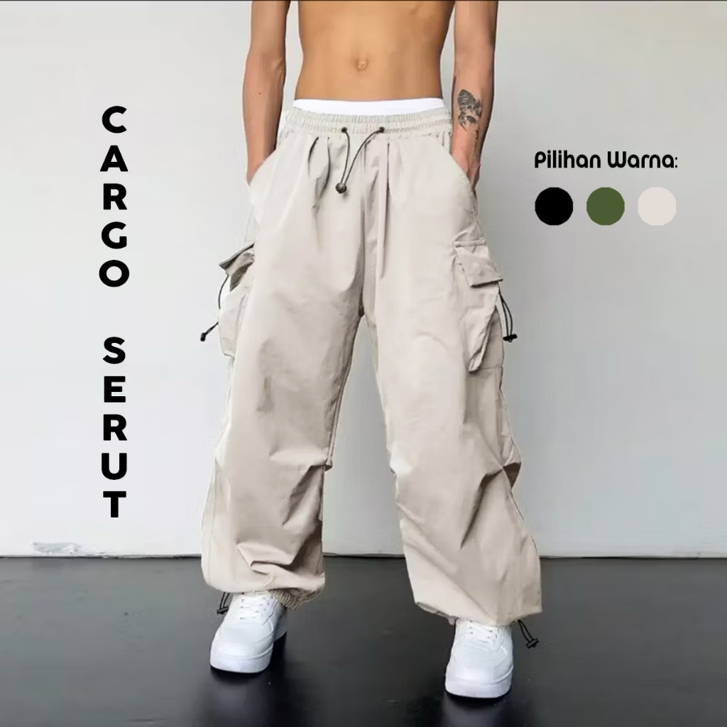 Cargo Loose Pants Celana Kargo Tali Serut Longgar Bahan Drill Unisex