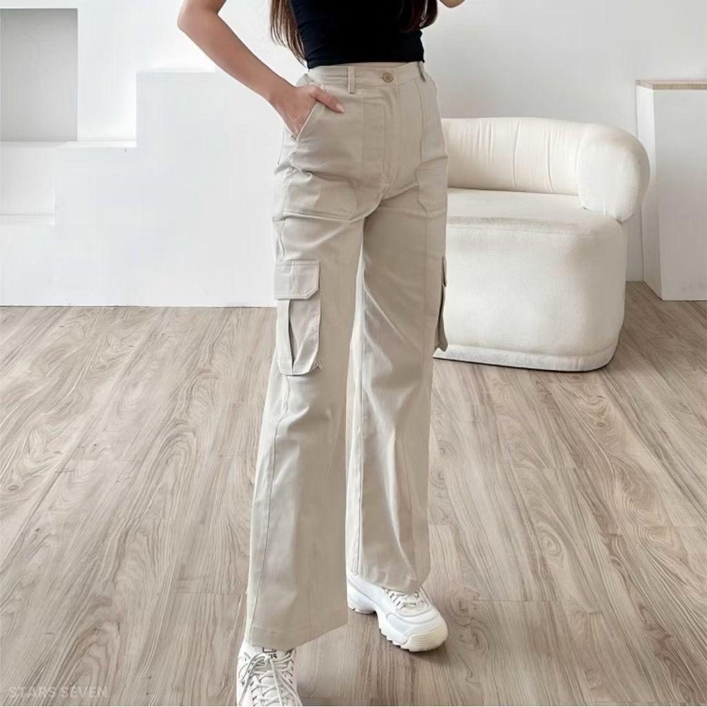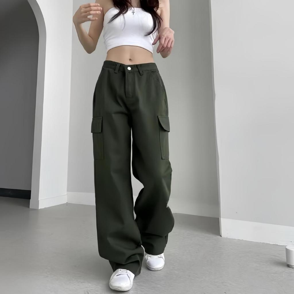 Cargo Pants Wanita Highwaist Loose Pants Korean Style Jumbo - Celana Cargo Wanita Terbaru