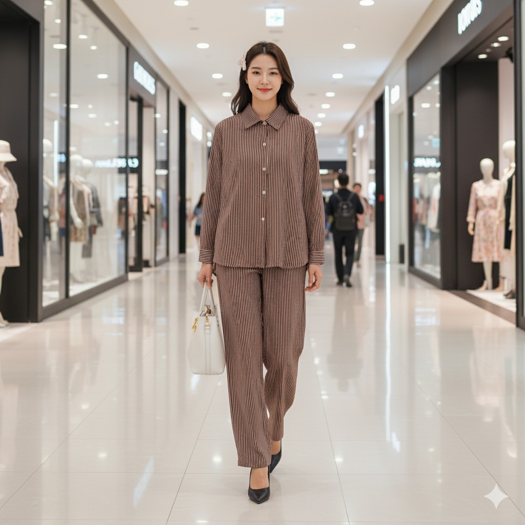 One Set Aluna Stripe / Kemeja Cotton Stripe / Kemeja Couple Murah Gratis Ongkir