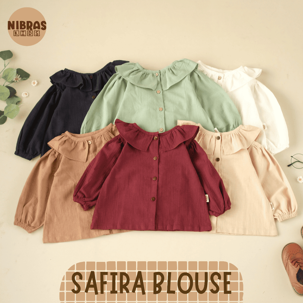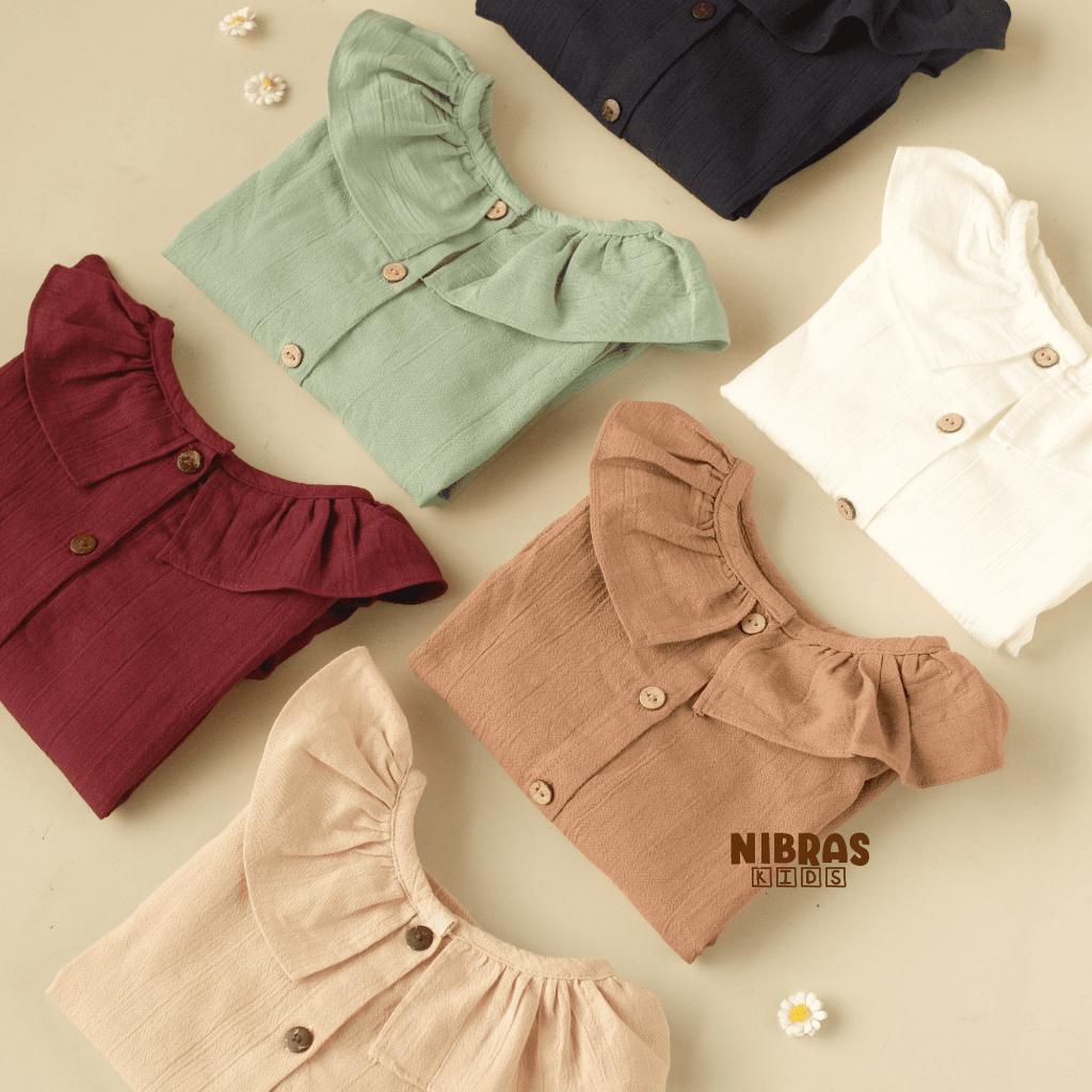 Blouse Anak Perempuan Safira | Baju Kemeja Anak Cewek Lengan Panjang Balon Bahan Linen Crinkle 1-6Th