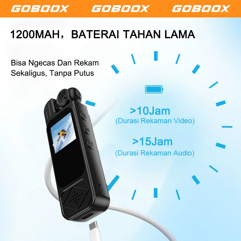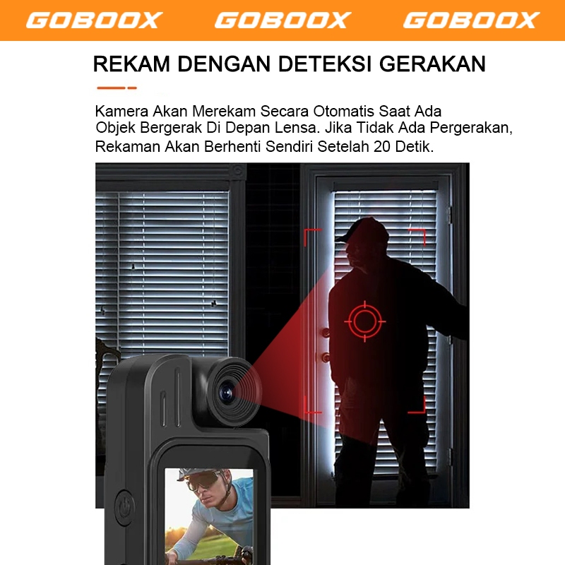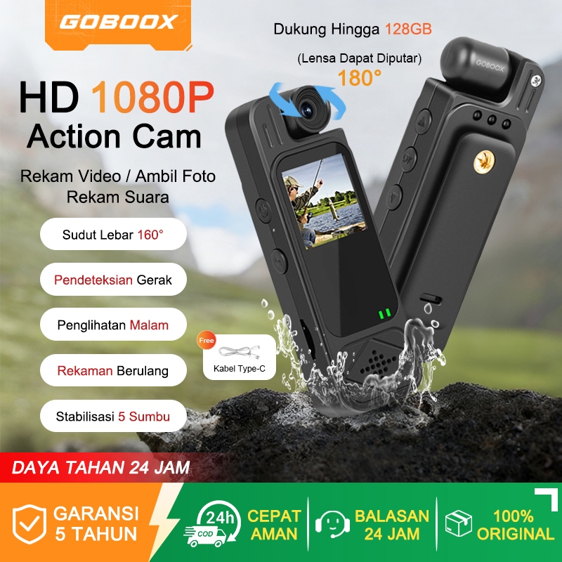 GOBOOX Action Cam HD 1080P Dudukan Dada Rotasi 180° Action Kamera Mini Vlog Camera Sudut Lebar 160° Deteksi Gerak Rekaman Siklus