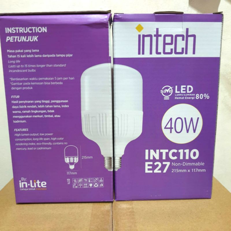 Lampu LED Bohlam Tabung Intech 40 Watt / Lampu Bohlam LED Cahaya Putih