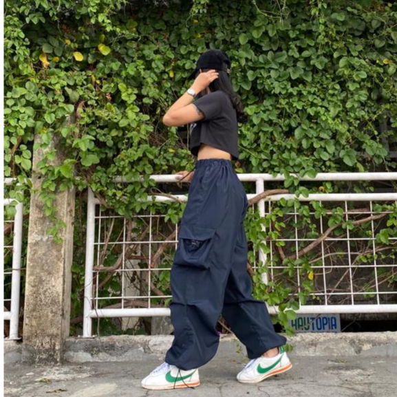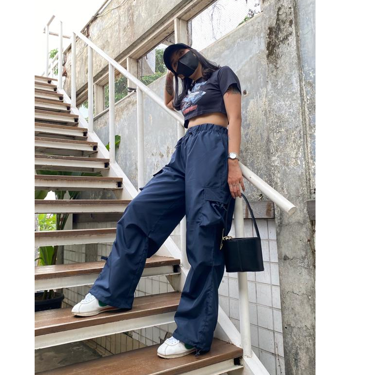 AIGO zeil cargo pants - celana cargo parasut panjang navy streetwear unisex