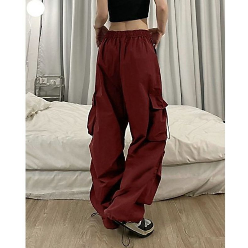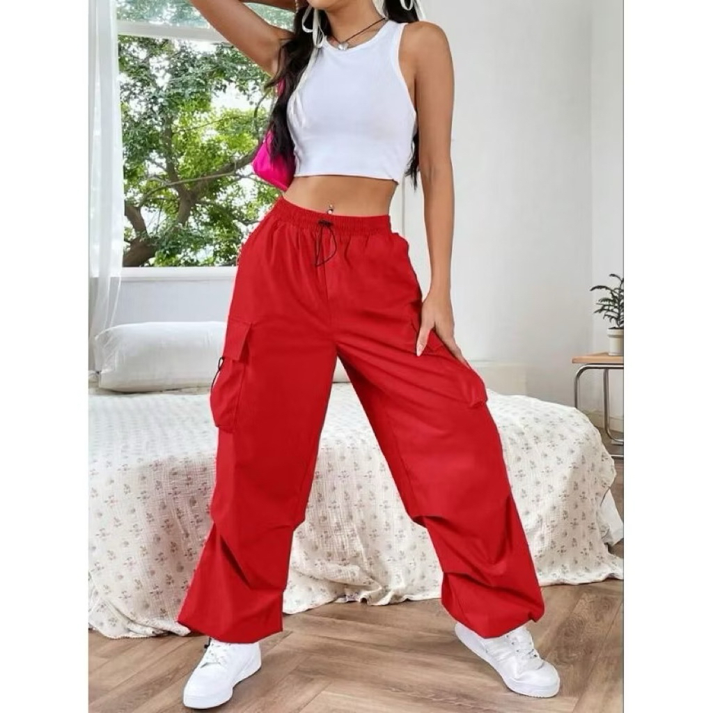 Celana Merah Panjang Wanita Pria Cargo Hip Hop Kulot Sweetpants Bahan Despo Cewe