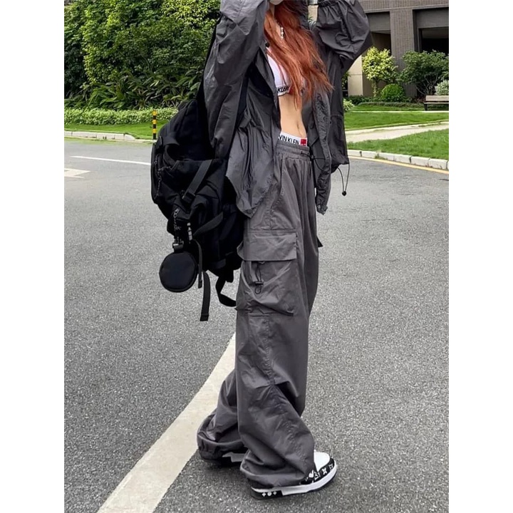 4boys- celana kasual harajuku kargo Teachwear Stretwear pria wanita