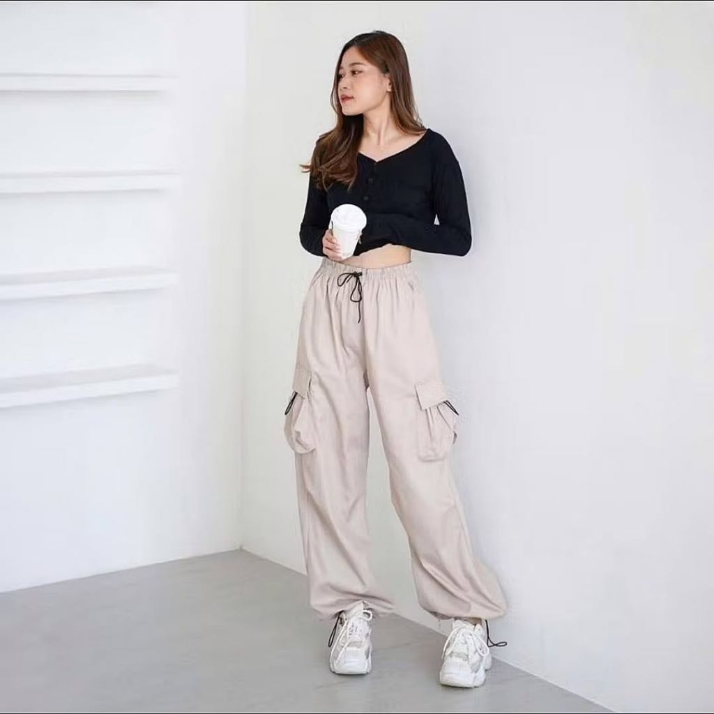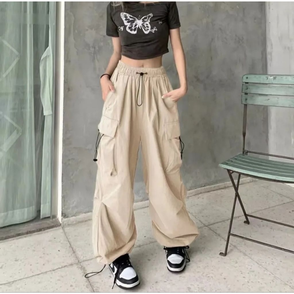 Cargo Pants Wanita Highwaist Loose Pants Korean Style Jumbo Celana Cargo Wanita Terbaru