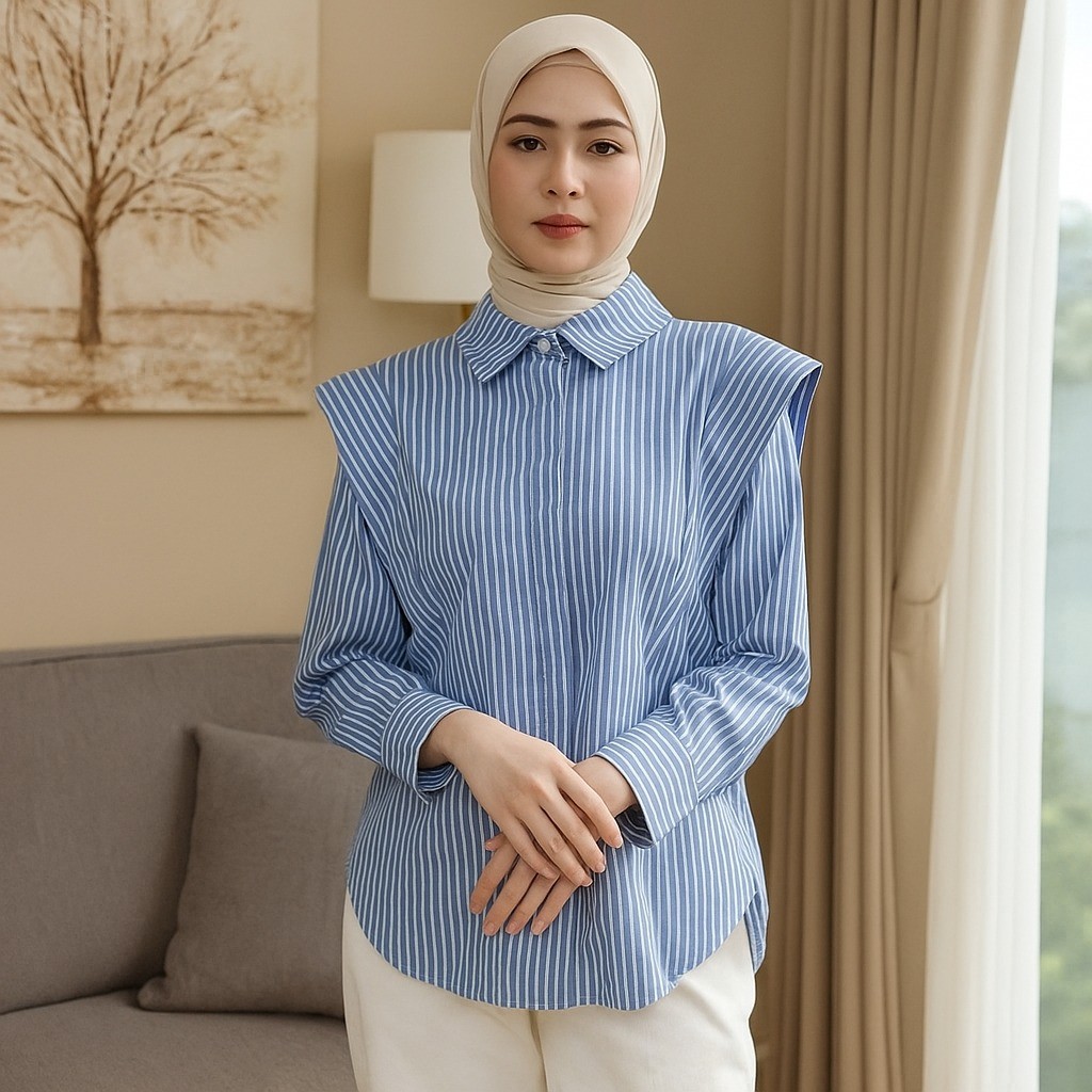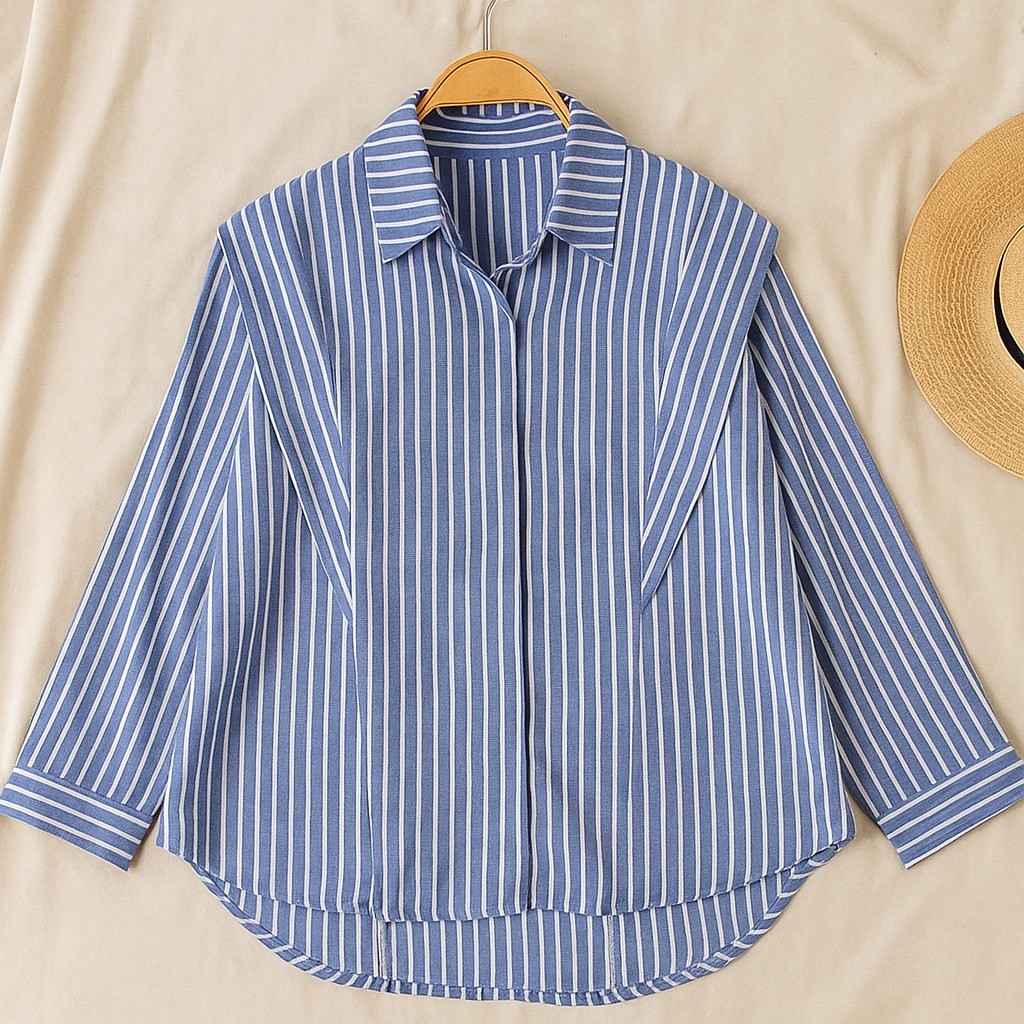 Femes Vella Shirt Top Atasan Kemeja Modern Kekinian Matt Katun Salur Fit To L XL Besar OOTD Korean Style Murah Gratis On